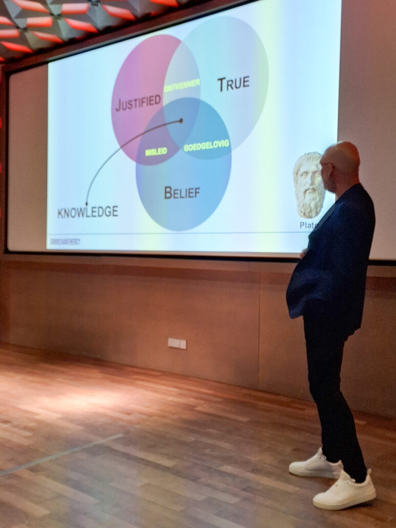 “Knowledge is not for knowing; knowledge is for cutting.” – Michel Foucault” Waarom willen we dingen weten? Wat weten we eigenlijk precies? En wat doet kennis met ons? Door de eeuwen heen hebben verschillende disciplines geprobeerd unieke perspectieven te bieden op de manier waarop kennis in samenlevingen wordt gedefinieerd, geproduceerd en overgedragen. Door de snelle opmars van digitale technologieën staan we voor belangrijke vraagstukken over de toekomst van kennis. Kennis wordt anders gegenereerd, geïnterpreteerd en verspreid. Tegelijkertijd zijn er ook nieuwe manieren ontstaan om kennis meer open en toegankelijk te maken en te delen. Hierdoor moeten we wellicht als individuen én als maatschappij onze blik op kennis aanpassen en onze perspectieven verbreden. In deze presentatie duiken we in de complexe wereld van kennis in het digitale tijdperk en nodigen we je uit om over deze onderwerpen te reflecteren met behulp van praktijkvoorbeelden.- Nepnieuws, desinformatie en kritisch denken